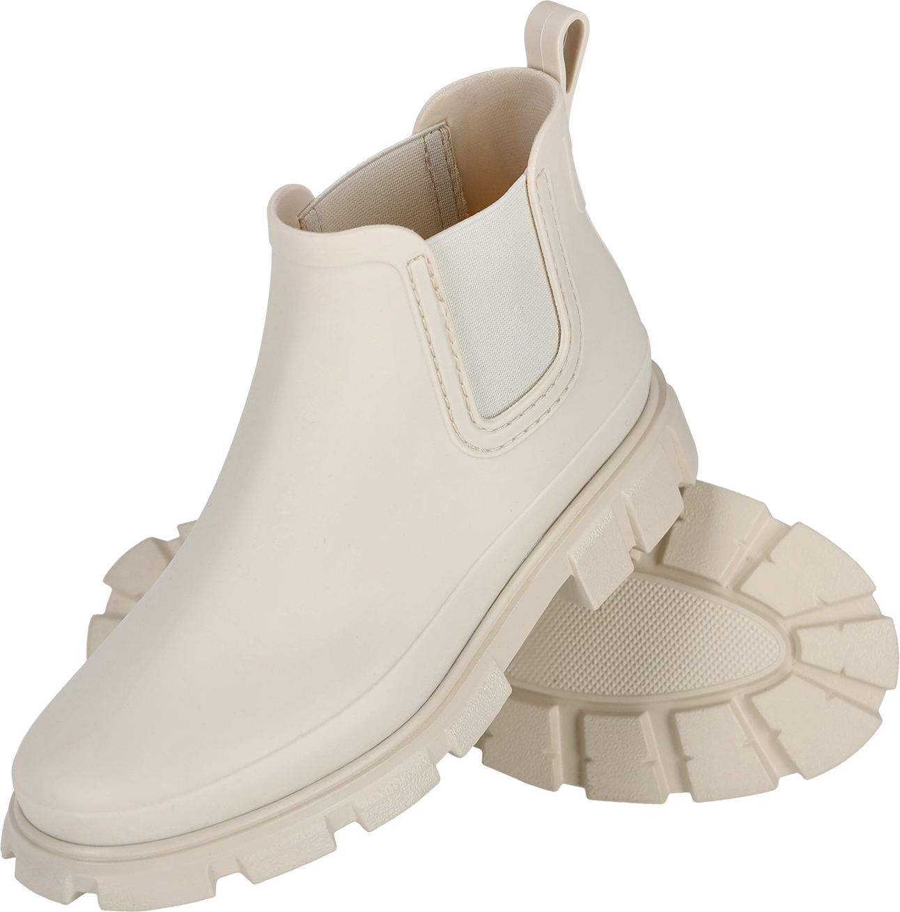 Krótkie kalosze damskie typu sztyblety wykonane z PCV z elastyczną wstawką. Wciągane i lekkie — idealne do pracy i codziennego użytku.