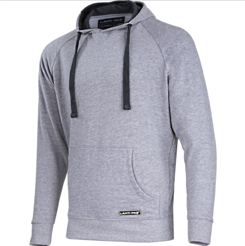 Bluza z kapturem Lahti Pro L4013001 to solidny i komfortowy model wykonany z wysokiej jakości dzianiny typu french terry. Materiał jest gładki od zewnętrznej strony, natomiast od wewnątrz posiada charakterystyczny miękki splot, który skutecznie wchłania wilgoć i zapewnia wysoki komfort noszenia.