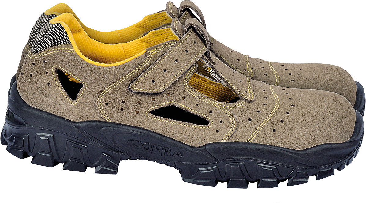Przewiewne sandały bezpieczne z dziurkowanego zamszu, przeznaczone do pracy i codziennego użytkowania w ciepłych warunkach. Stalowy podnosek, stalowe wzmocnienie śródstopia oraz antypoślizgowa podeszwa zapewniają bezpieczeństwo i komfort przez cały dzień.