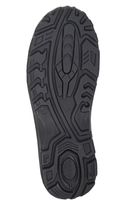 Model spełnia wymagania kategorii bezpieczeństwa S3, został wyposażony w stalowy podnosek chroniący palce oraz stalową wkładkę antyprzebiciową zabezpieczającą stopę przed przebiciem od spodu. Dodatkowe właściwości antyelektrostatyczne, absorpcja energii w części piętowej oraz ograniczona przepuszczalność i absorpcja wody zwiększają bezpieczeństwo i wygodę pracy. Odblaskowe sznurowadła i wstawki poprawiają widoczność użytkownika.
