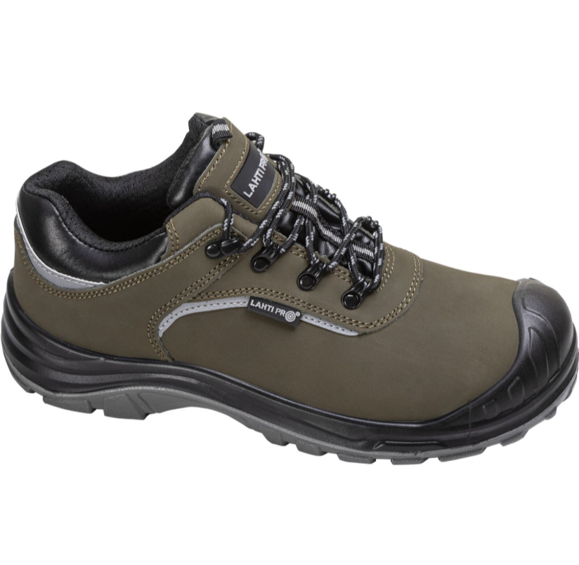 Buty robocze Lahti Pro L30438 to solidne i wygodne półbuty ochronne przeznaczone do pracy w wymagających warunkach. Wierzch wykonany ze skóry nubukowej gwarantuje trwałość oraz odporność na uszkodzenia mechaniczne, a jednocześnie estetyczny wygląd.