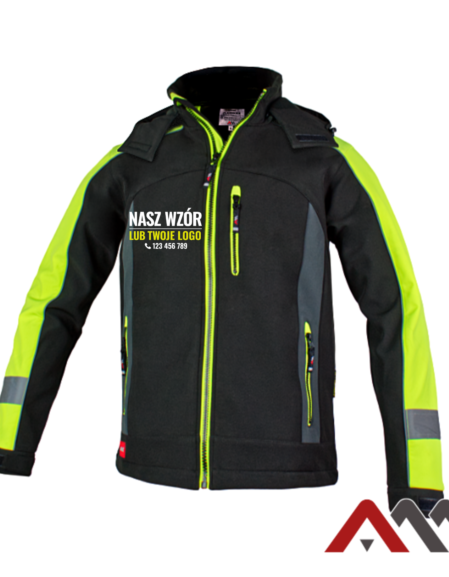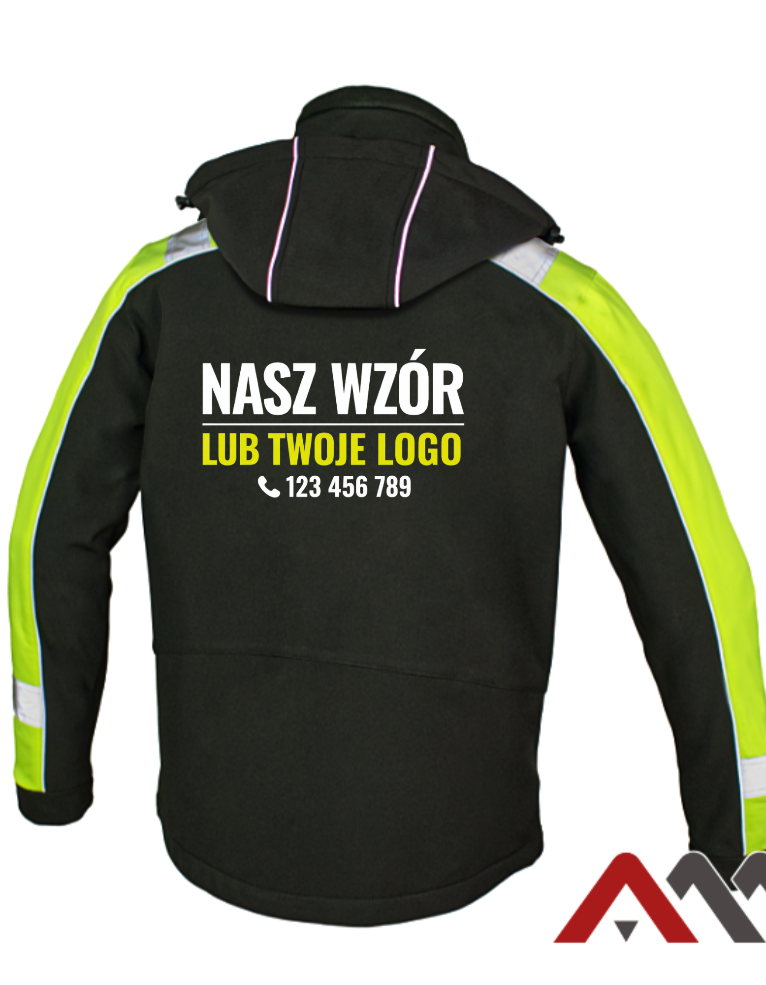 Dla poprawy widoczności zastosowano pasy i bizy odblaskowe na rękawach oraz ramionach.