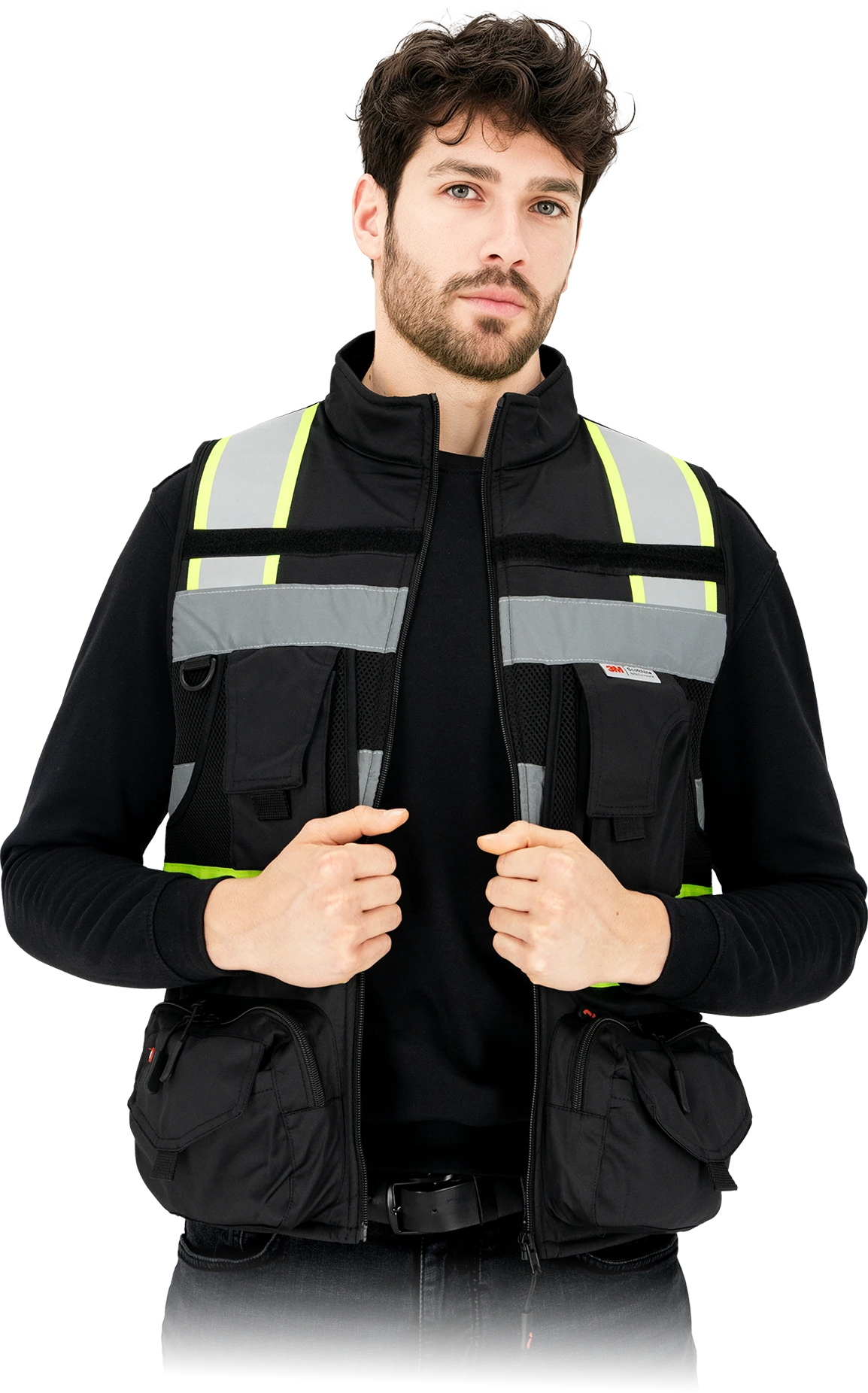 Praktyczne detale, takie jak końcówka do przypięcia kluczy oraz rzep umożliwiający doczepienie dodatkowych akcesoriów, zwiększają użyteczność kamizelki w codziennej pracy. Regulacja w dolnej części za pomocą pasków pozwala dopasować kamizelkę do sylwetki i zwiększa komfort noszenia.