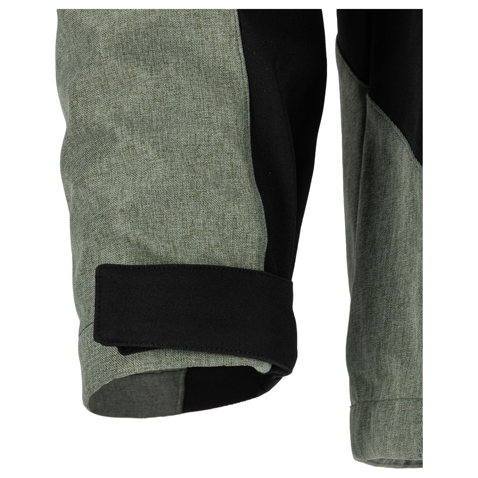 - Specjalna 3-warstwowa tkanina soft-shell z membraną TPU, wodoodporna (8000 mm), oddychająca (3000 g/m²/24h), gwarantująca wysoki komfort użytkowania