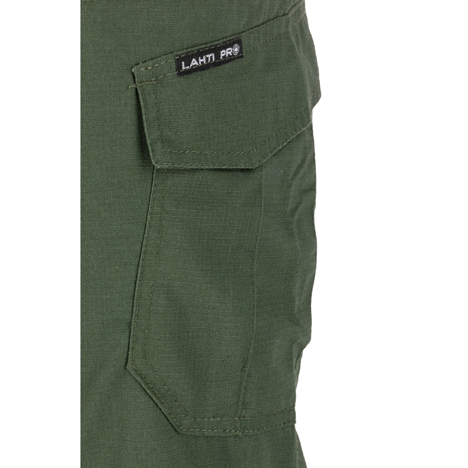 Spodnie Lahti Pro L40540 to uniwersalne bojówki robocze inspirowane klasycznymi, militarnymi fasonami, idealne do pracy, warsztatu, ogrodu czy codziennego użytkowania. Uszyte z trwałej tkaniny rip-stop (65% poliester, 35% bawełna, gramatura ok. 255 g/m²), materiał jest mocny, a jednocześnie pozwala skórze oddychać, co zwiększa komfort w różnych warunkach. Model posiada 8 funkcjonalnych kieszeni, w tym 4 zapinane na rzep, co ułatwia bezpieczne przechowywanie narzędzi i akcesoriów. Spodnie wyróżnia również modny krój slim fit, który nie ogranicza ruchów, a jednocześnie wygląda nowocześnie i estetycznie.