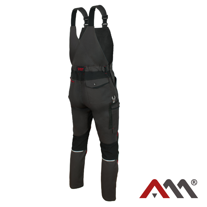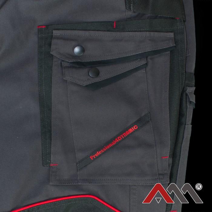 Spodnie ochronne Professional4DYNAMIC ogrodniczki Slim grafitowo-czarne z czerwonymi wstawkami