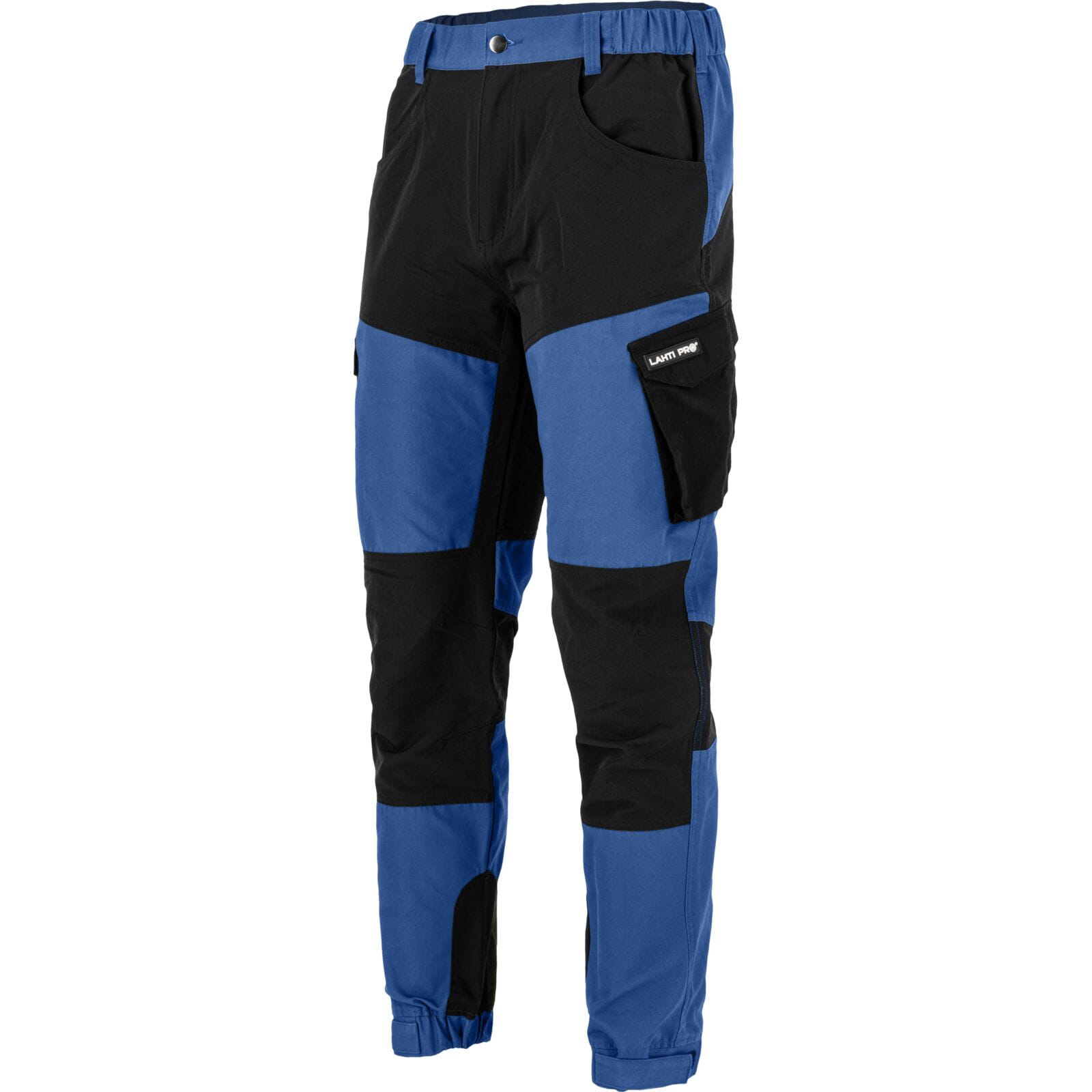 Elastyczne i wygodne spodnie robocze Lahti Pro L40556 w kolorze niebiesko-czarnym wykonane z materiału stretch 4-way, który zapewnia swobodę ruchów i komfort podczas pracy. Model o praktycznym kroju z funkcjonalnymi kieszeniami i dodatkowymi wzmocnieniami.